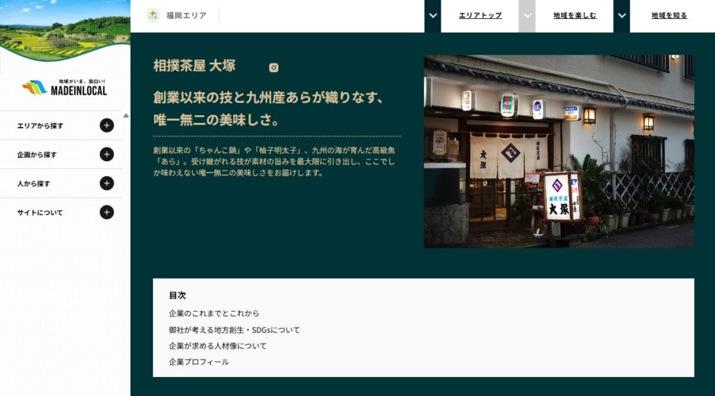 この度、相撲茶屋大塚がMADE IN LOCAL様のサイトにおいて、福岡を代表する企業100選に選出頂き、ご掲載を頂きました。